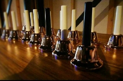 年1回の発表会ではソロ演奏のほか、低学年は合奏、高学年はハンドベルの発表もしています。